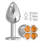 Анальная втулка малая (S) Silver клевер с оранжевым кристаллом, 509-00