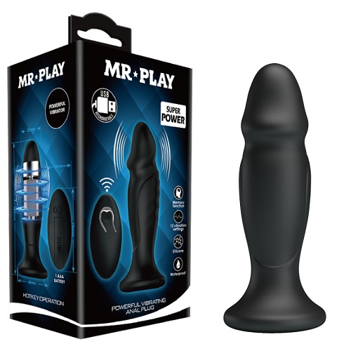 Анальная пробка выполнена из высококачественного силикона с вибрацией. Этот материал является одним из наиболее гигиеничных, служит максимально долго и прост в уходе. Эргономичное ограничительное основание делает ношение пробки комфортным и безопасным. Характеристики: 12 режимов вибрации, материал- силикон, длина- 12,5 см, диаметр- 3,2 см. Работает от USB, в комплекте идет пульт управления. Упаковка: картонная коробка с принтом.