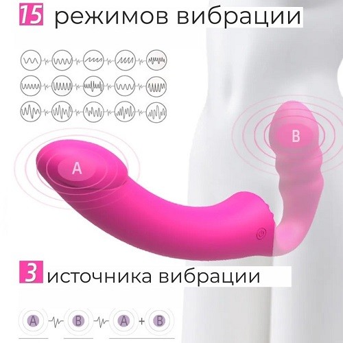 Включение/переключение виброрежимов: краткое нажатие кнопки с изображением зигзагообразной линии. При этом включаются и работают сразу все виброэлементы и вибрация ощущается по всей поверхности интимного аксессуара. Управление работой режимов вибрации в разных частях изделия: краткое нажатие кнопки с изображением треугольника. С помощью данной кнопки можно одновременно включать вибрацию сразу в коротком и длинном стволах, а также в области между ними, или в каждой части по отдельности.