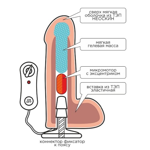 • Встроенный вибромоторчик: Управление осуществляется с помощью выносного пульта.