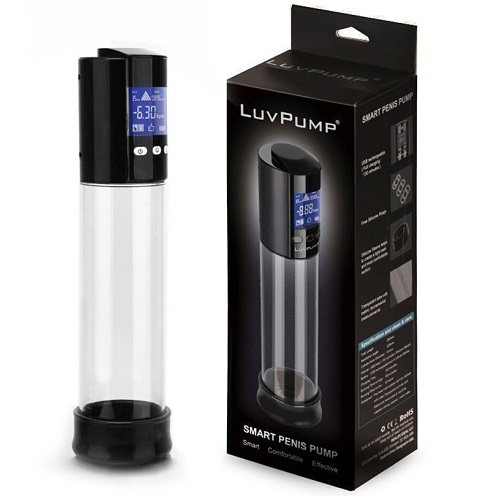 Автоматическая вакуумная помпа разработана для мужчин, желающих увеличить размеры пениса и повысить качество интимной жизни. Во время использования помпа LUVPUMP: - ускоряет кровообращение, обеспечивая прилив крови к половому члену; - повышает тонус мышц и эластичность тканей пениса, способствуя увеличению его размеров; - дарит великолепную эрекцию; - позволяет ощутить потрясающие эротические эмоции; - имитирует оральные ласки; - придаёт уверенности в себе; - расширяет сексуальные возможности. Комплектация изделия: - прочная пластиковая колба с разделительной шкалой, позволяющей отслеживать изменение длины полового члена; - контроллер с электронным дисплеем, кнопками управления и разъёмом для зарядного устройства; - съёмная эластичная насадка, обеспечивающая плотное прилегание помпы к телу. При необходимости эластичную насадку можно заменить. Например, на мягкую вставку-мастурбатор; - USB-провод для зарядки помпы. Управление работой помпы в ручном режиме - Включение/выключение изделия: нажать и 3 секунды удерживать кнопку вкл./выкл. Должен загореться/погаснуть электронный дисплей. - Включение вакуума: краткое нажатие кнопки вкл./выкл. - Фиксация уровня вакуума: краткое нажатие кнопки вкл./выкл. - Сбросить давление до нужного уровня: краткое нажатие кнопки сброса воздуха. - Полностью сбросить давление: нажать и несколько секунд удерживать кнопку сброса воздуха. Управление работой помпы в интеллектуальном режиме Перед переходом в интеллектуальный режим необходимо установить желаемое давление. Для этого нужно выполнить действия, описанные в пункте «Управление работой помпы в ручном режиме». После достижения желаемого давления, 3 секунды удерживать кнопку smart. В нижней средней части экрана должен появится соответствующий значок, указывающий на то, что давление установлено. Если ранее установленное давление нужно отменить, необходимо удерживать кнопку smart ещё 3 секунды. Для перехода в интеллектуальный режим после установки желаемого давления кратко нажать кнопку smart. В левом нижнем углу экрана появится соответствующий значок. Давление начнёт нагнетаться до необходимого уровня. Затем вакуум будет сброшен. Через 20 минут весть процесс повториться. Оставшееся время отобразится в левом верхнем углу экрана. Для изменения времени выдержи при желаемом/максимальном давлении в интеллектуальном режиме нажать кнопку smart. Первоначальное время выдержки равно 0. Каждое нажатие добавляет 1 минуту. Максимальное время выдержки составляет 10 минут. Время выдержи будет отображаться в верхнем левом углу экрана. Для того, чтобы усилить эффект от тренировки во время выдержки насос будет производить прерывистое всасывание. Переключиться в ручной режим можно в любое время, нажав кнопку сброса воздуха.