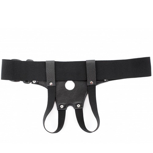 Трусики выполнены из натуральной кожи черного цвета с элементами из черных эластичных резинок, надежно фиксирующих изделие на теле. Трусики джоки обеспечиваю доступ к интимным зонам. Диаметр отверстия для страпона 2,5 см. Размер легко изменить. Максимально комфортный аксессуар разнообразит любую БДСМ игру.