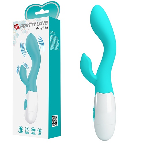 Вибратор Brighty от бренда PRETTY LOVE изготовлен из ABS и силикона. Он оснащён мощным мотором с 30 функциями вибрации и работает на 2 батарейках типа AAA. Этот двойной стимулятор обеспечивает одновременное воздействие на точку G и клитор. Гибкий дизайн поддерживает контакт с клитором при любом движении, а простое управление позволяет настраивать интенсивность вибраций или отключать стимуляцию точки G или клитора. Общий диаметр — 3,4 см, общая длина — 20 см, длина рабочей части — 10,5 см. Вес — 107 грамм.