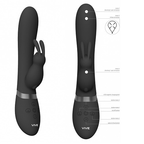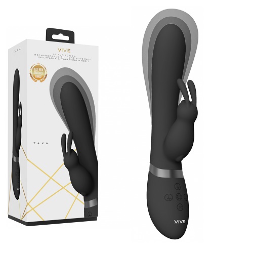 Вибраторы "Кролик" - Rabbit - Вибромассажер Taka с функцией расширения чёрный, VIVE042BLK