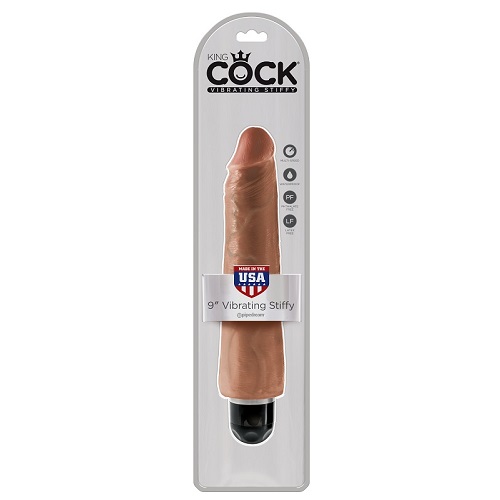 Вибромассажер реалистик загорелый King Cock 9 Vibrating Stiffy Tan Pipedream, c вибрацией, длина 27.90см, диаметр 5.80см