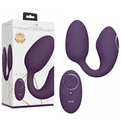 Aika – это вибро-яйцо с дополнительной клиторальной стимуляцией изогнутой формы и оснащенное 2-мя независимыми моторами. Первый мотор в самом яйце, создает проникающую вибрацию, стимулирующую точку G, а второй импульсно-волновую пульсацию. Пульт управления на 4 кнопки расположен на внешней части устройства + перезаряжаемый пульт дистанционного управления. Aika разработана с учетом физиологии и особенности строения женского тела. Изготовлено изделие из шелковистого медицинского (гипоаллергенного) силикона и как большинство моделей линейки VIVE имеет кнопку мгновенного оргазма, запуская все моторы на максимум одним касанием.